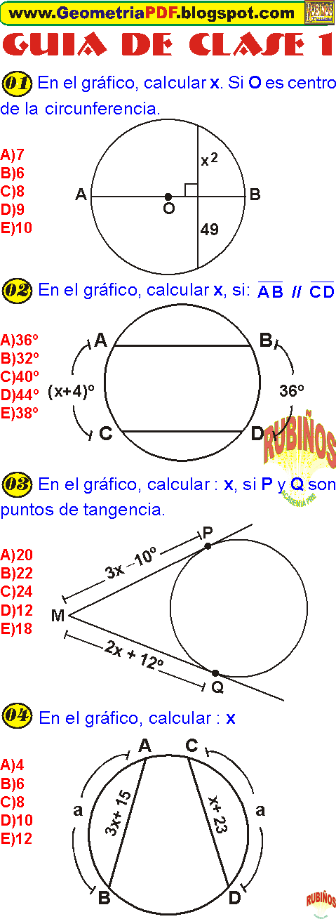 Angulos En La Circunferencia Ejercicios Resueltos Pdf