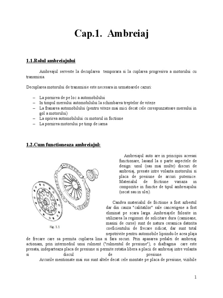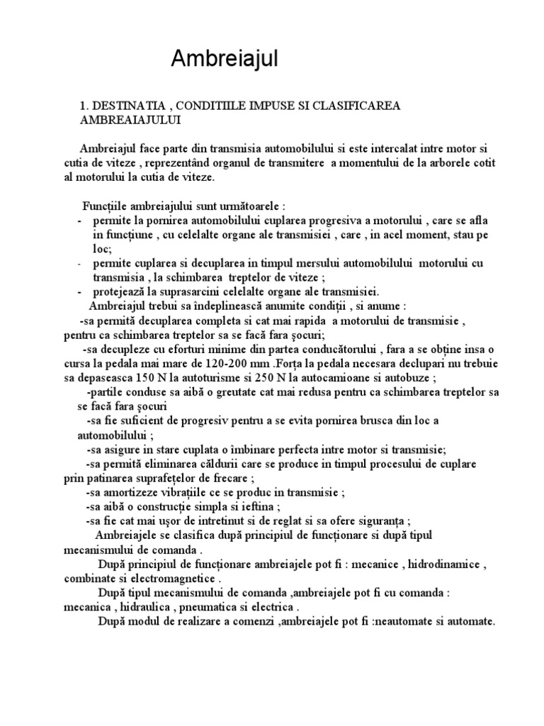 Proiect Rolul Si Cerintele Impuse Ambreiajului 293700 Graduo