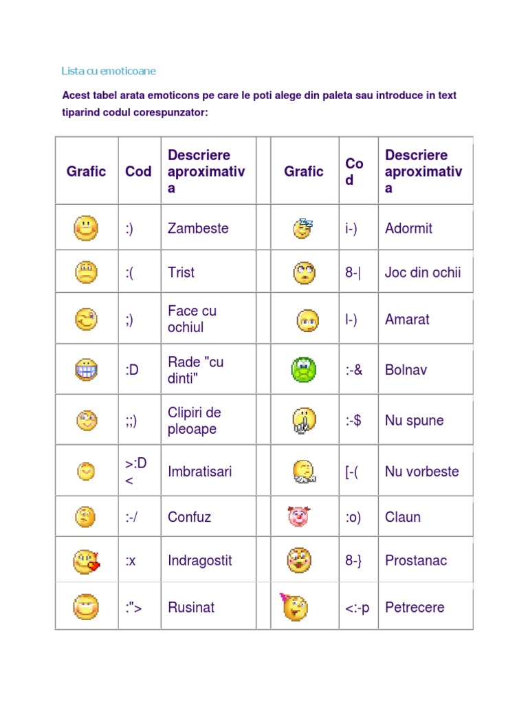 Lista Emoticoanelor Facebook Pentru Comentarii Violeta Loredana