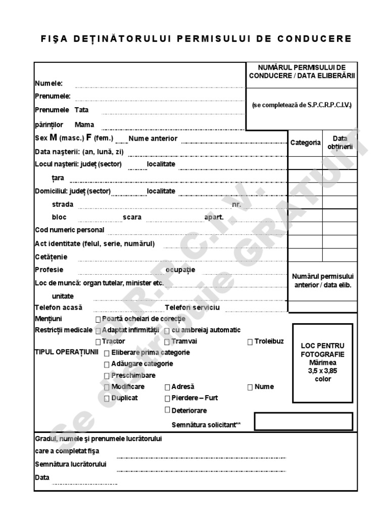 Fisa Tip Detinatorului Permisului Conducere Pdf
