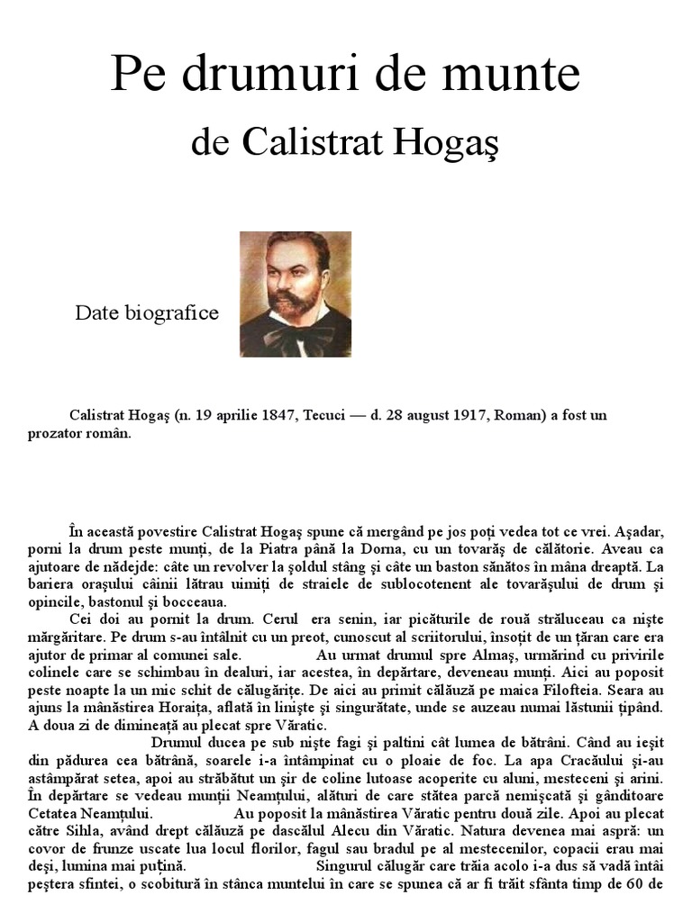 Pe Drumuri De Munte Calistrat Hogas Casa Literelor