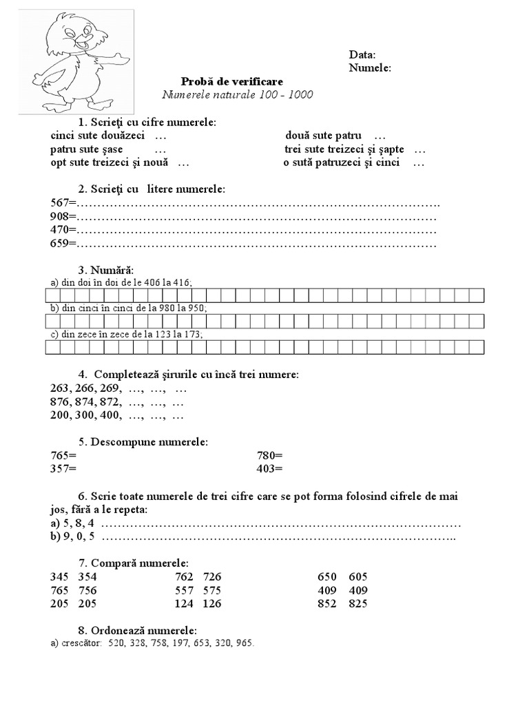6 Proba De Evaluare Sumativa Numerele De La 0 La 1 000 000 Doc