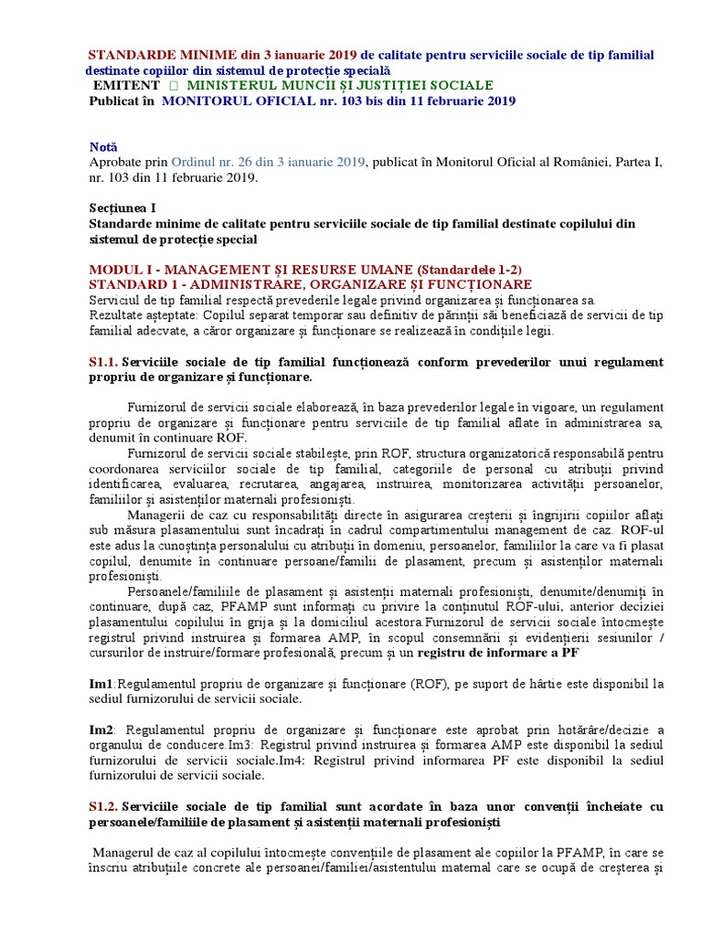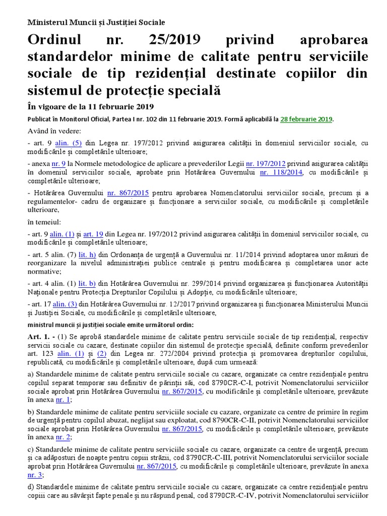 Standarde Minime Din 3 Ianuarie 2019de Calitate Pentru Serviciile