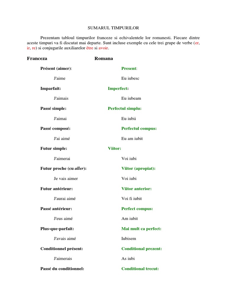 62717594 Timpurile Verbelor Limbii Franceze Docx Conjugaison