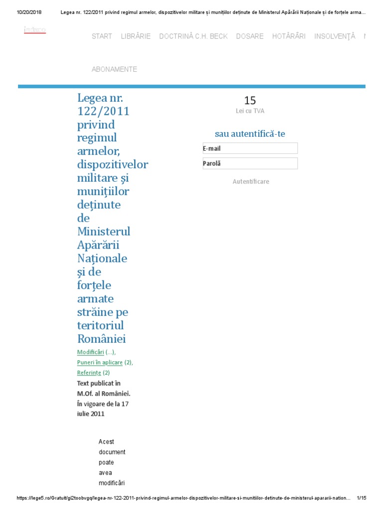 Uzul De Armă Lege 122 2011 Lege5 Ro