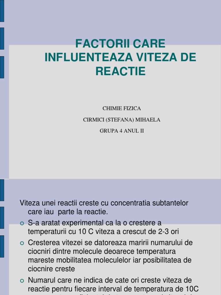 Doc Factorii Care Influenteaza Viteza De Reactie Maria Boian
