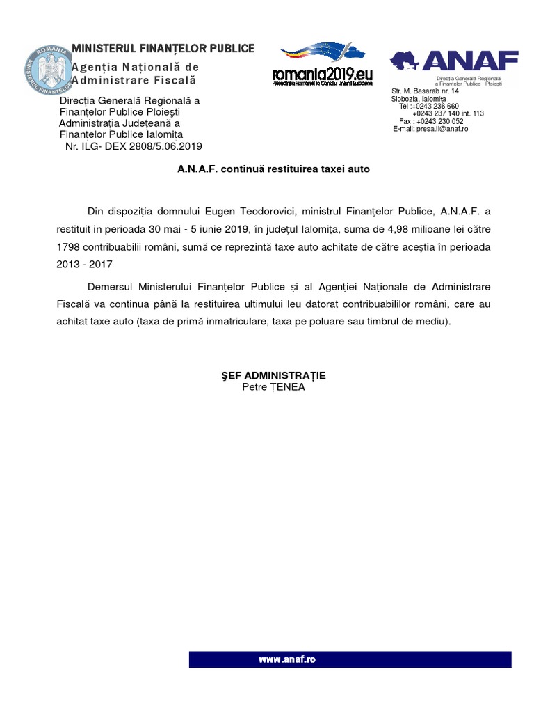 Https Static Anaf Ro Static 3 Galati 20190910085053 Taxa Auto Pdf